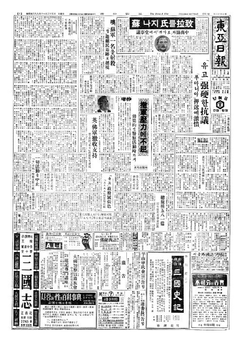 - 三次戰(삼차전)으로『항』解放可能(해방가능) 『토인비』博士東京(박사동경)서演說(연설)