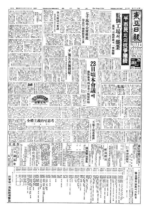 - 23日頃本會議(일경본회의)에 豫算審査(예산심사)、四分委(사분위)서質疑終結(질의종결)
