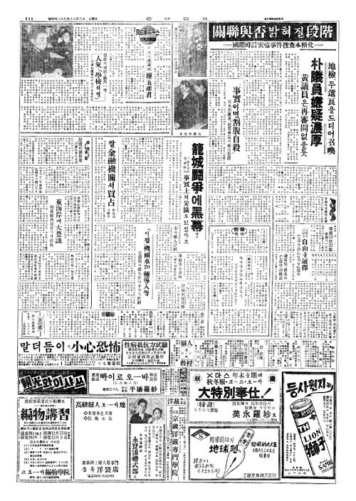 - "共犯(공범)일境遇肅淸(경우숙청)"李起鵬氏(이기붕씨)、黃(황)·朴兩氏處理(박량씨처리)에談(담)