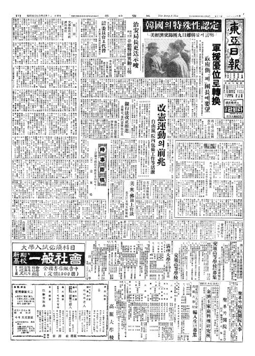 - 時事斷稿(시사단고)…言論(언논)과政治(정치)의前進(전진)을爲(위)하여…(中(중))