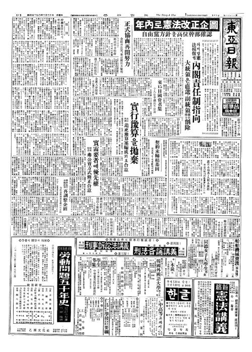 - 來(래)15日國會召集(일국회소집) 十九日李議長(십구일이의장)이公吿(공고)