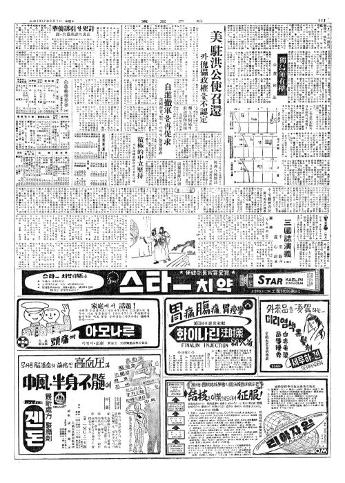 - 美(미)、駐洪公使召還(주홍공사소환) 카傀儡政權(괴뇌정권)을不認定(부인정)