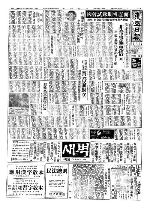 - 韓日(한일) 協商重大段階(협상중대단계)에 金公使四日突然歸國(김공사사일돌연귀국)