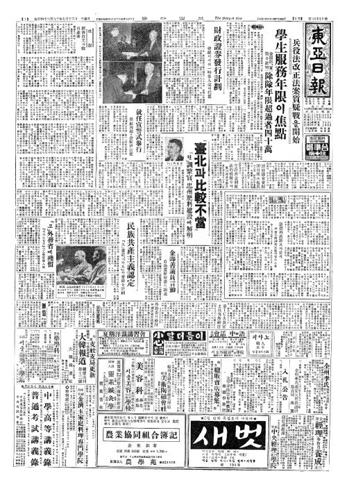 - 兵役法改正法案質疑戰(병역법개정법안질의전)을開始(개시) 學生服務年限(학생복무년한)이焦點(초점)