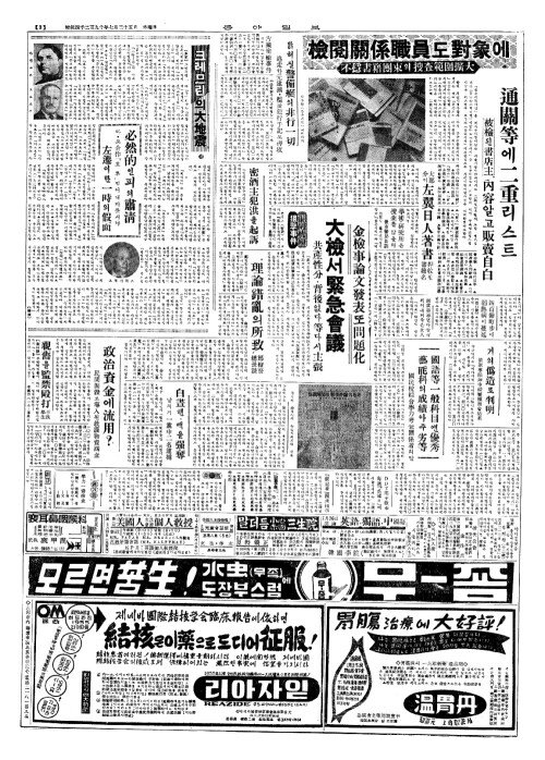 - 檢閱關係職員(검열관계직원)도對象(대상)에 不穩書籍團束(부온서적단속)의搜査範圍擴大(수사범위확대)