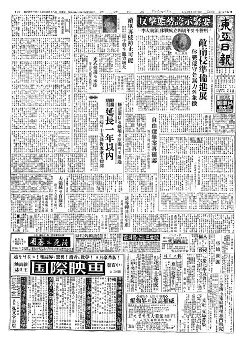 - 反擊態勢誇示緊要(반격태세과시긴요) 李大統領(이대통령)、休戰成立四(휴전성입사)?年(년)맞아聲明(성명)