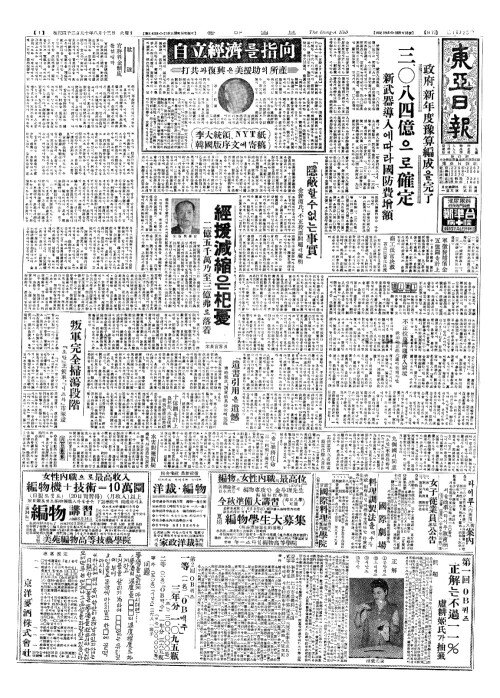 - 政府(정부)、新年度豫算編成(신년탁예산편성)을完了(완요) 三(삼)、○八四億(팔사억)으로確定(확정)