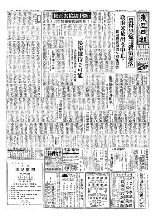 - "換率維持(환률유지)는可能(가능)" 金財務長官(금재무장관) 糓價等物價下落(곡가등물가하락)에樂觀(악관)