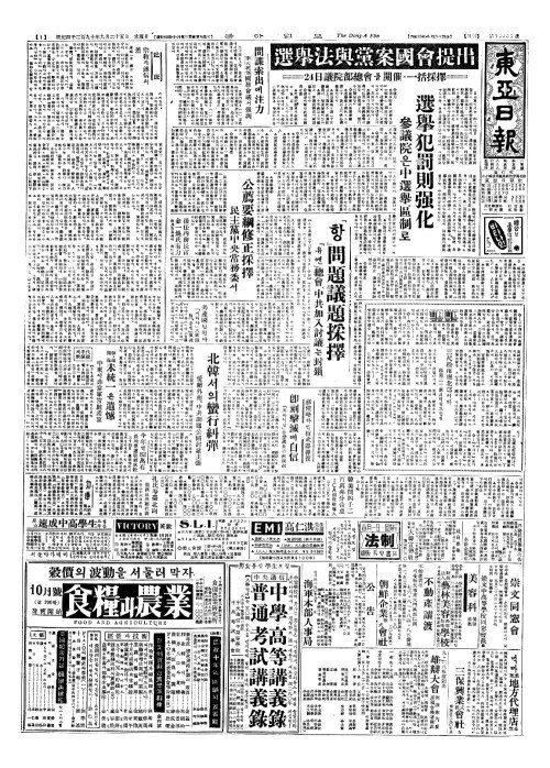 - 『항』問題議題採擇(문제의제채택) 『유엔』總會(총회)、中共加入討議(중공가입토의)는封鎻(봉쇄)
