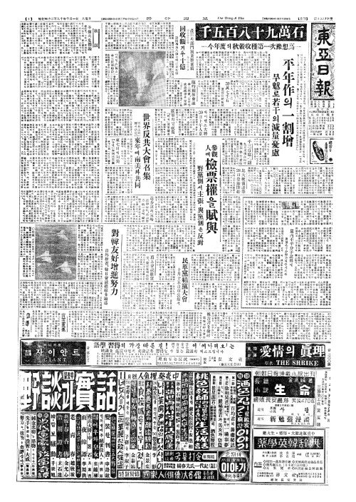 - 民革黨結黨大會(민혁당결당대회) 十月十五日市公舘(십월십오일시공관)서