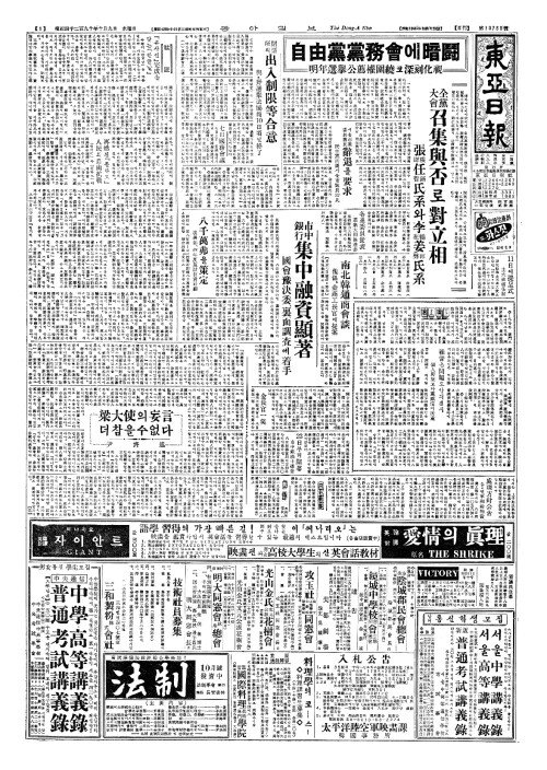 - 自由黨黨務會(자유당당무회)에暗鬪(암투)