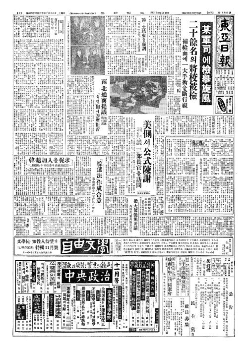- 南(남)·北通商提議傀儡休戰代表(북통상제의괴뇌휴전대표) 『유엔』 側(측)서卽席拒否(즉석거부)
