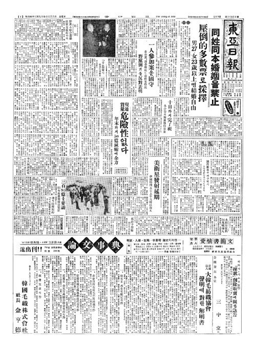 - 同姓同本婚姻(동성동본혼인)을禁止(금지) 壓倒的多數票(압도적다수표)로採擇(채택)