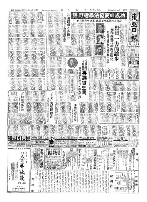 - "自由黨內(자유당내)의挾雜輩(협잡배) 再選(재선)말도록 國內政爭(국내정쟁)은蘇(소)·日(일)에漁夫之利(어부지리)"