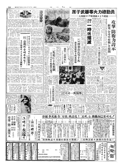 - 原子武器等火力總動員(원자무기등화력총동원) 大規模(대규모)의UN軍訓練(군훈련)오늘이絕頂(절정)