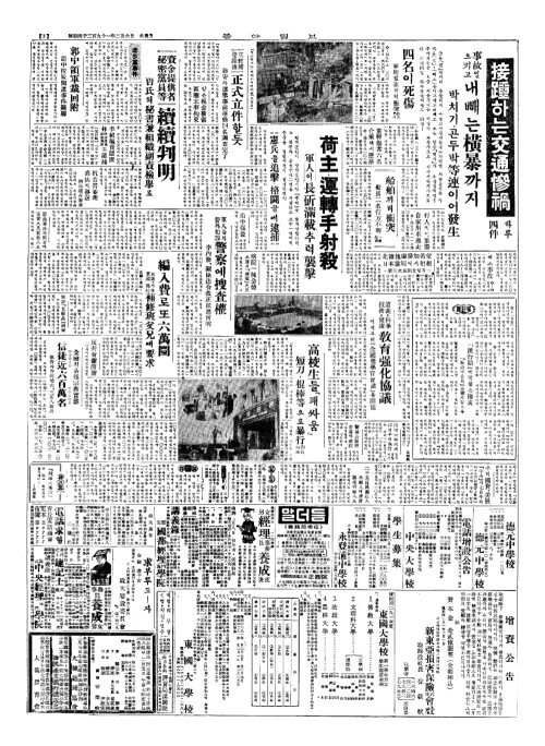 - 接踵(접종)하는交通慘禍(교통참화) 하루四件(사건)