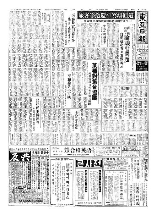 - 外交的經路(외교적경노)밟아라 아大統領(대통영)、頂上會談(정상회담)에對蘇回翰(대소회한)