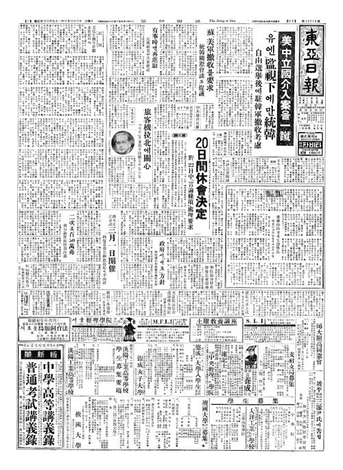 - 美(미)、中立國介入案(중립국개입안)을一蹴(일축)