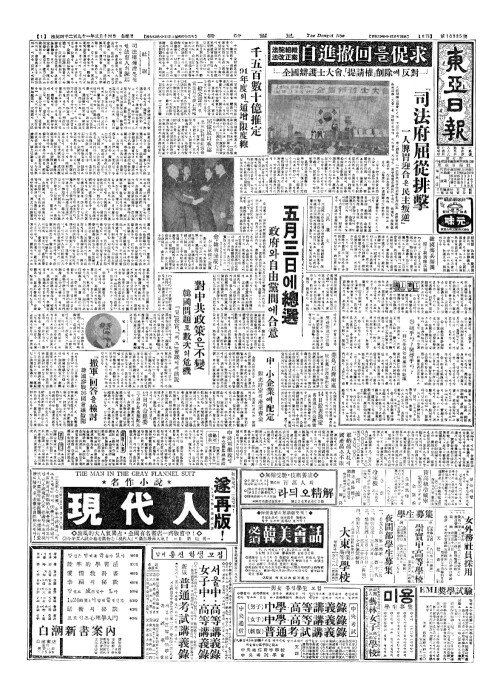 - 五月三日(오월삼일)에總選(총선) 政府(정부)와自由黨間(자유당간)에合意(합의)