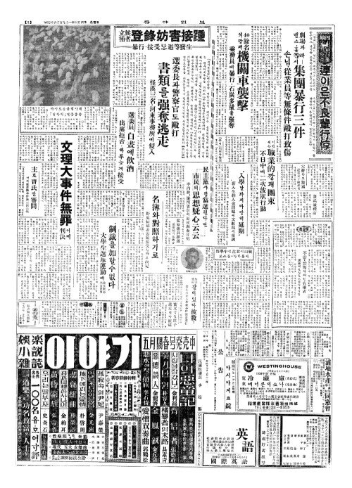 - 文理大事件無罪(문리대사건무죄) 어제判決(판결)