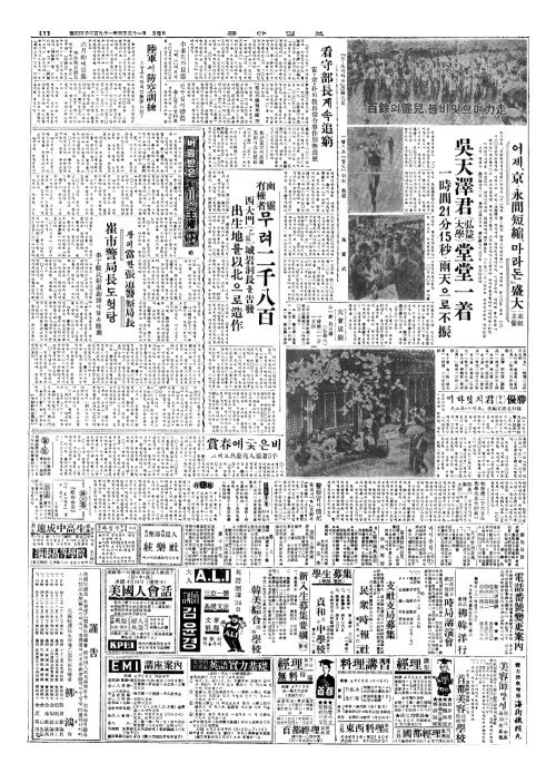 - 어제、京(경)·永間短縮(영간단축)『마라돈』盛大(성대) 本社主催(본사주최)
