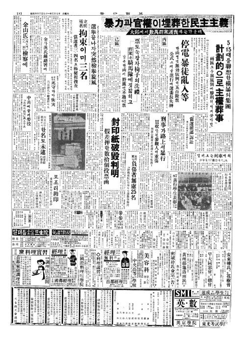 - 選擧(선거)끝나자突然檢擧旋風(돌연검거선풍) 立候補者(입후보자) 拘束(구속)이미三名(삼명)