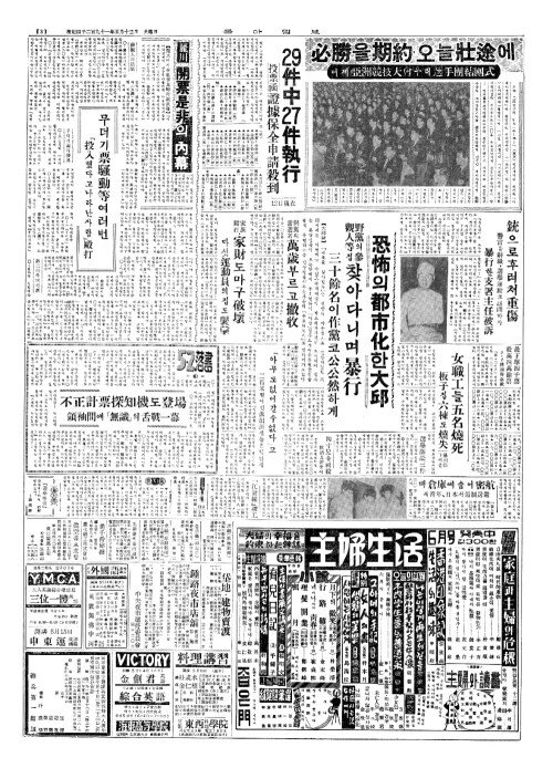 - 女職工(녀직공)들五名燒死(오명소사) 板子(판자)집六棟(륙동)도燒失(소실) 楊州郡下(양주군하)에불