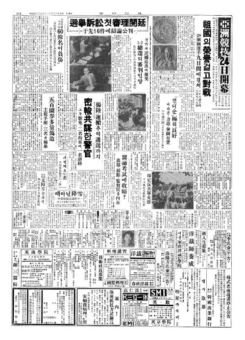 - 亞洲競技(아주경기) 24日開幕(일개막)