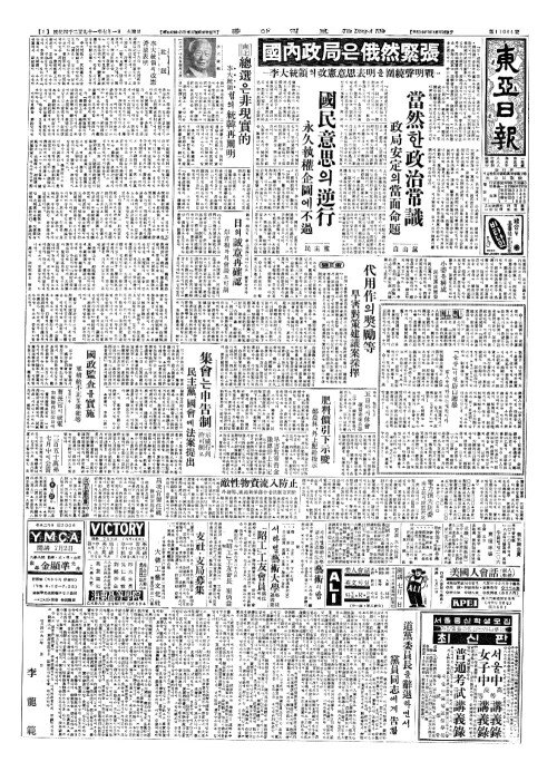 - 國府新言論法發効(국부신언논법발효) 出版界反對(출판계반대)에不拘(부구)