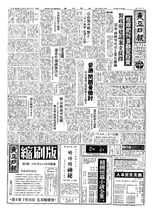 - "自由黨(자유당)과檢(검)·警(경)은 『데모』操縱(조종)·庇護(비호)를自認(자인)"