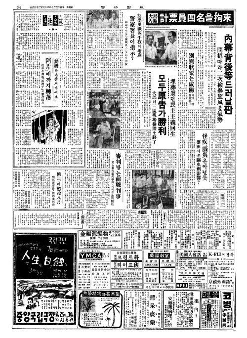 - 大邱丙區(대구병구) 計票員四名(계표원사명)을拘束(구속)