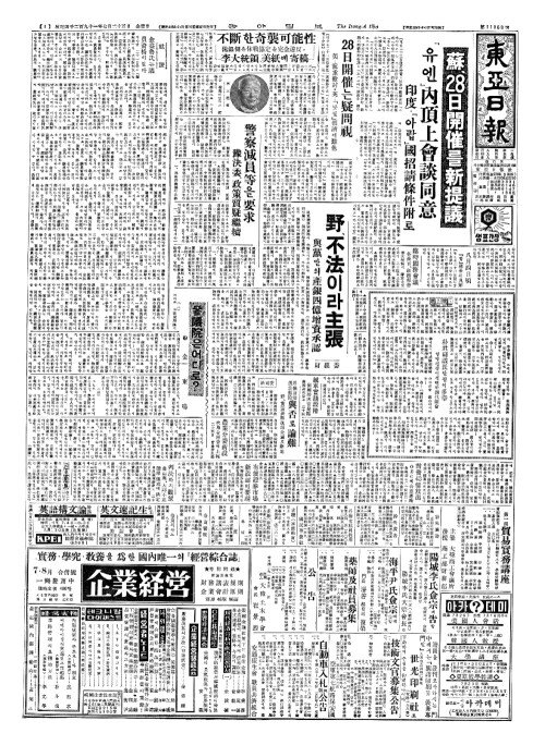 - 八月四日頃(팔월사일경) 『함』總長(총장)의見解(현해)