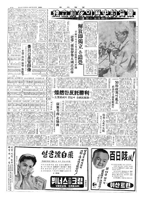 - 오늘 自主獨立(자주독립) 열돐 感激(감격)의8·15解放(해방)13?年(년)