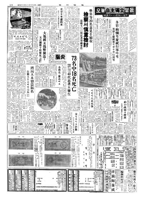 - 腦炎(뇌염) 73名中(명중)18名死亡(명사망)