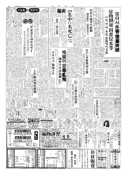 - 腦炎(뇌염) 279名中(명중)71名死亡(명사망) 全國患者累計(전국환자라계)