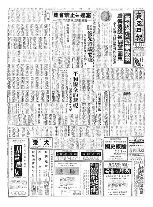 - 集會禁止(집회금지)는違憲(위헌) 民主黨(민주당)서看做(간주) 保安法案反對抑壓策(보안법안반대억압책)