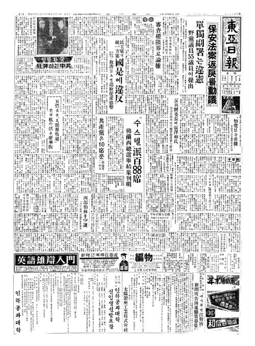 - 新保安法案通過(신보안법안통과)에 벌써『民意(민의)』發動(발동)?