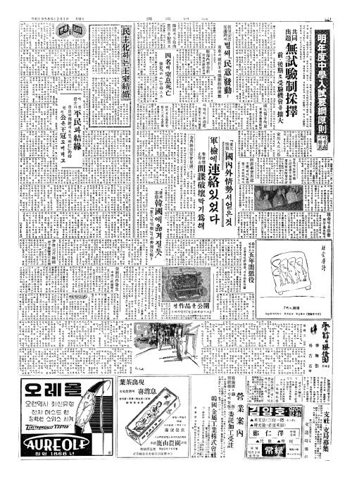 - 明年度中學入試要綱原則(명년도중학입시요강원즉) 서울市(시)서發表(발표)