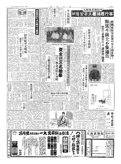 - "言論條項(언론조항)은不釋然(부석연)" 反共鬪委(반공투위)、保安法案通過促求談話(보안법안통과촉구담화)