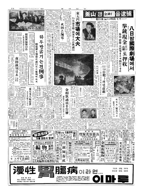 - 東大門市場(동대문시장)에大火(대화) 75店舖全燒(점포전소)·損害千八百萬圜(손해천팔백만원) 當局發表(당국발표)