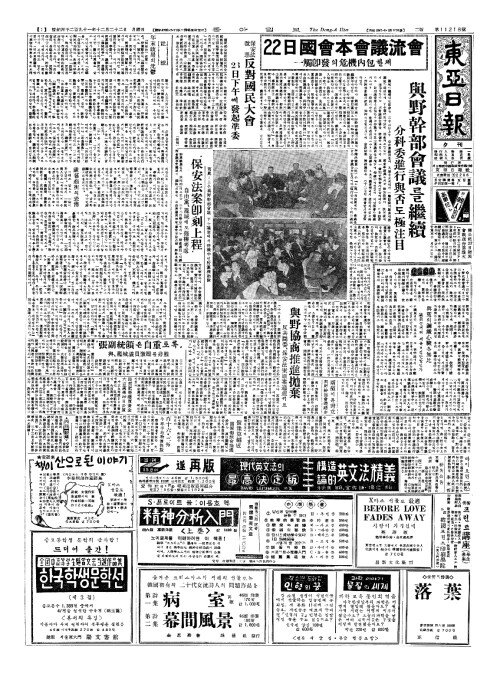 - "保安法案卽刻上程(보안법안즉각상정)"自由黨(자유당)、籠城(롱성)에도强權考慮(강권고려)