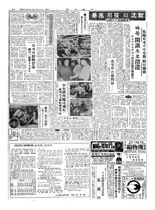 - 22日國會本會議流會(일국회본회의류회) 一觸卽發(일촉즉발)의危機內包(위기내포)한채