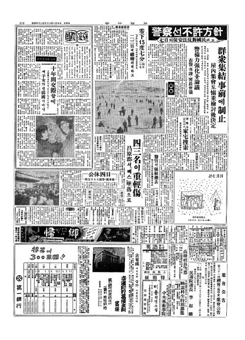 - 警察(경찰)선不許方針(부허방침) 七日(칠일)의保安法反對國民(보안법반대국민)데모