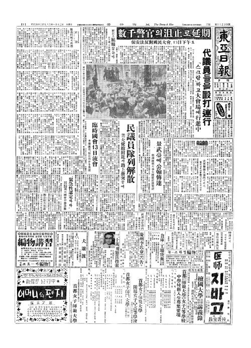 - 議事堂(의사당)앞『데모』外信(외신)에서도報道(보도)