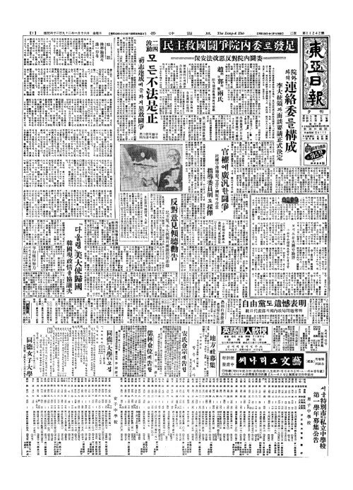 - 國會連四日(국회련사일)째流會(류회) 自由黨(자유당)16日(일)도不參(부삼)