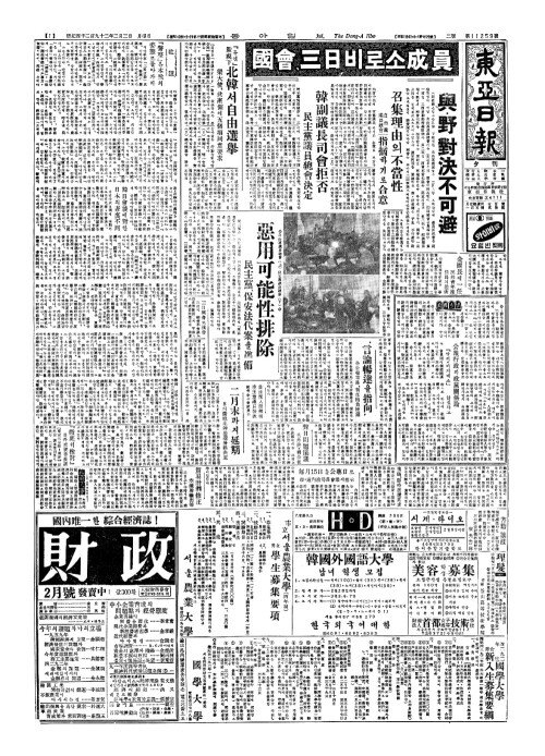 - 國會(국회)、三日(삼일)비로소成員(성원)