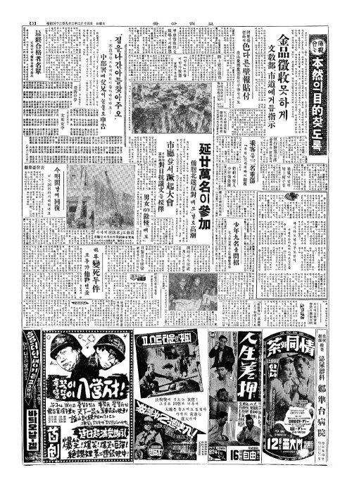 - 16日(일)에發會式(발회식) 僑胞送北反對全國委(교포송배반대전국위)