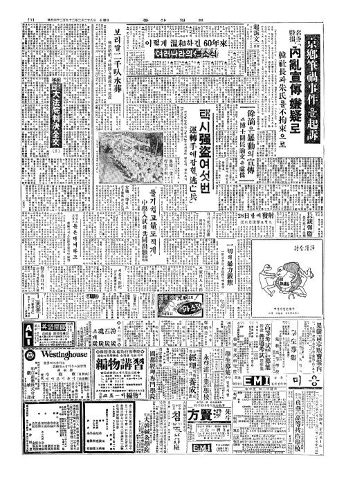 - 京鄕筆禍事件(경향필화사건)을起訴(기소)