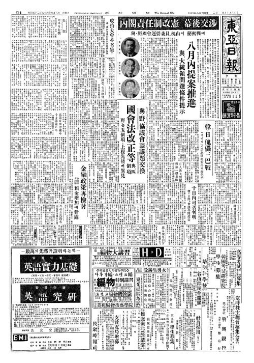 - 與(여)·野(야)、協議會談議題交換(협의회담의제교환) 國會法改正等(국회법개정등) 與(여)、四個項(사개항)