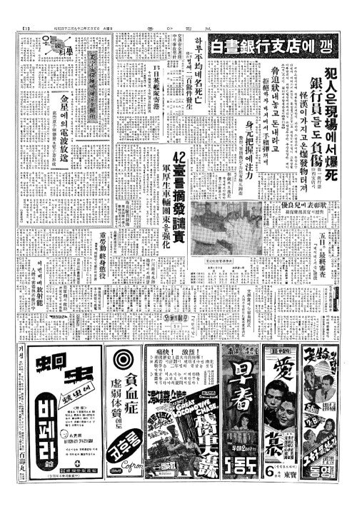 - 아직도身元未把握(신원미파악) 犯人(범인)의『손팔』中央科學硏究所(중앙과학연구소)로 銀行(은행)깽事件(사건)